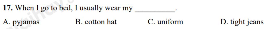 `-` Tạm dịch : Khi đi ngủ tôi thường mặc đồ ngủ .