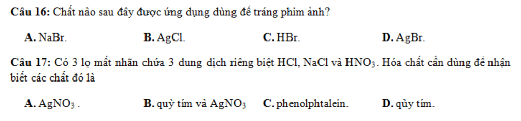 Câu 16: chọn B: AgBr