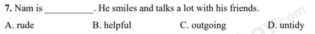 `->` Dịch: Nam ___ . Anh ấy cười và nói rất nhiều với bạn bè `->` anh ấy là người hướng ngoại