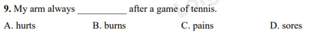 `9. A. hurts