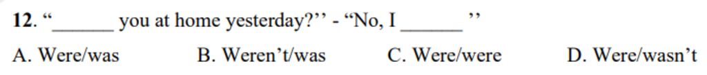 `-` Trả lời: Yes, S + was/were hoặc No, S + was/were + not