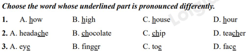 `2 . ` `A` phát âm /k/ `-` còn lại phát âm /tʃ/