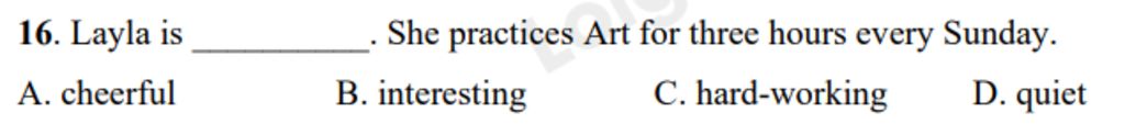 Hard - working (adj) : chăm chỉ