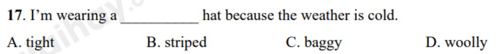 Dịch câu ở đề bài `:` Tôi đội/mặc ___ vì thời tiết lạnh