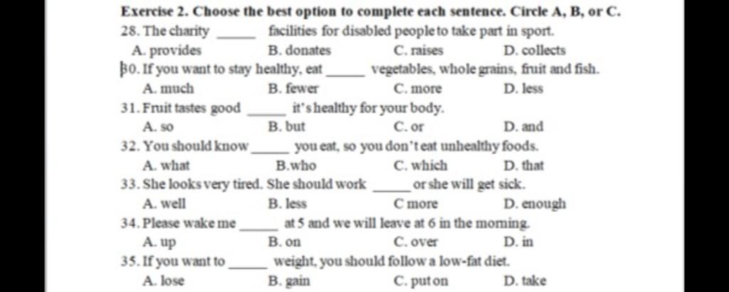 Exercise 2. Choose the best option to complete each sentence. Circle A, B, or C.