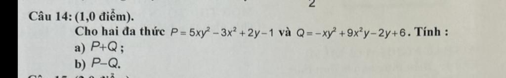 a)P+Q=(5xy^2-3x^2+2y-1)+(xy^2+9x^2y-2y+6)