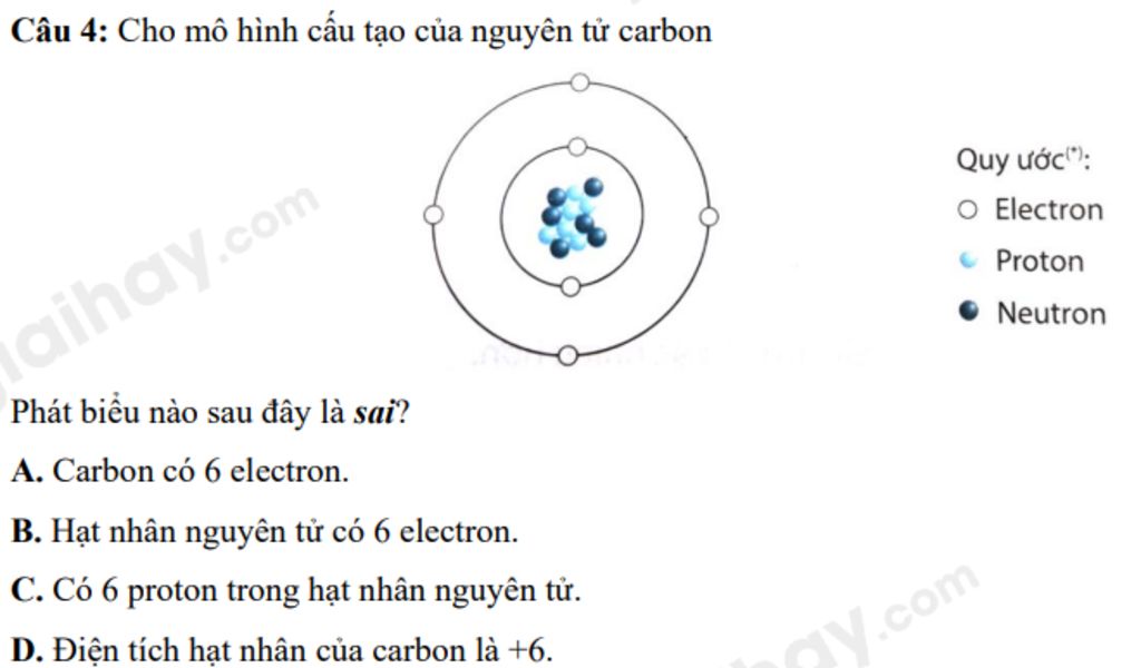 Câu 4: Cho mô hình cấu tạo của nguyên tử carbon