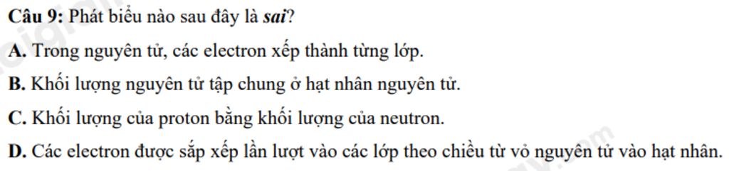Câu 9: Phát biểu nào sau đây là sai?