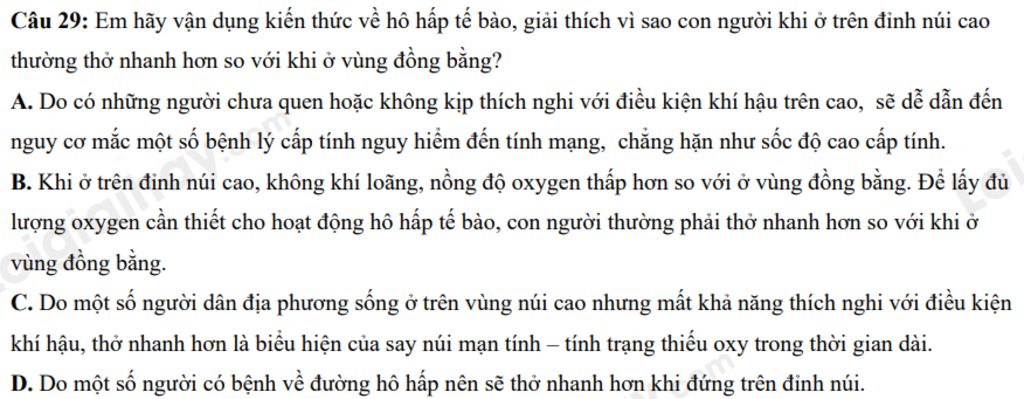⇒ Vì vậy, khi ở trên đỉnh núi cao, con người thường phải thở nhanh hơn để lấy đủ lượng oxygen