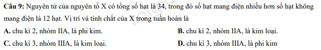 `=>` Nguyên tố X ở chu kì 3, nhóm IIA, là kim loại