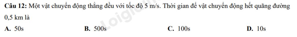 `t=s/v=500 : 5 = 100` giây `(s)`