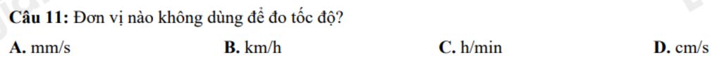 `=>` `A,B,D` `->` Đơn vị đo tốc độ