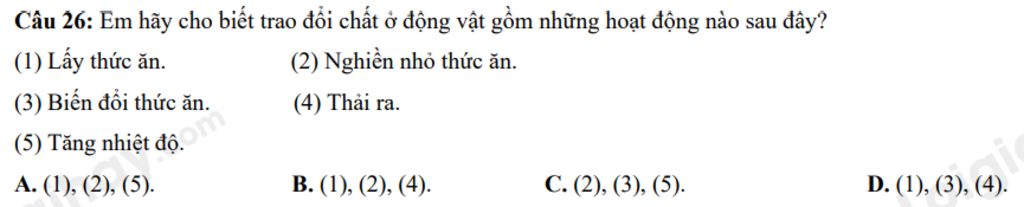 `@ ` Trao đổi chất ở động vật gồm các hoạt động`: `