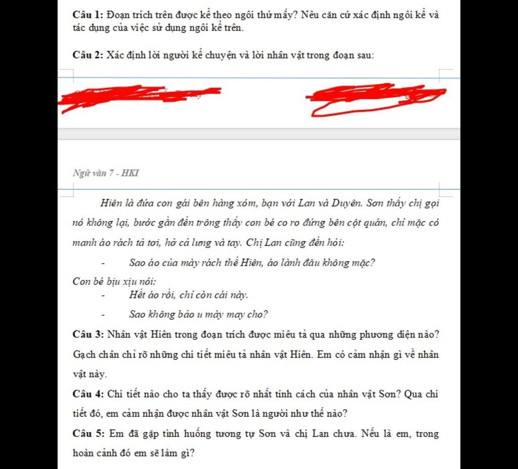 Câu 3: Nhân vật Hiên trong đoạn trích được miêu tả qua những phương diện nào? Gạch chân chỉ rõ những chi tiết miêu tả nhân vật Hiên. Em có cảm nhận gì về nhân vật này? Trong đoạn trích, nhân vật Hiên được miêu tả qua các chi tiết sau: - Chỉ mặc có manh áo rách tả tơi, hở cả lưng và tay. - Bịu xịu nói rằng áo đã hết, chỉ còn cái này. - Mẹ của Hiên là người nghèo, chỉ có nghề đi mò cua bắt ốc. Nhân vật Hiên được miêu tả là một đứa trẻ nghèo khó, không có đủ quần áo để mặc. Cảm nhận về nhân vật này có thể là sự đáng thương và đồng cảm với hoàn cảnh khó khăn mà Hiên đang phải đối mặt. Câu 4: Chi tiết nào cho ta thấy được rõ nét tính cách của nhân vật Sơn? Qua chỉ tiết đó, em cảm nhận được nhân vật Sơn là người như thế nào? Chi tiết cho thấy rõ tính cách của nhân vật Sơn là khi anh ta nhớ thương đến em Duyên và có ý nghĩ tốt muốn giúp đỡ Hiên bằng cách đem cho nó một cái áo bông cũ. Từ hành động này, ta có thể cảm nhận được Sơn là một người tốt bụng, quan tâm đến người khác và sẵn lòng giúp đỡ. Câu 5: Em đã gặp tình huống tương tự Son và chị Lan chưa. Nếu là em, trong hoàn cảnh đó em sẽ làm gì? Trả lời câu hỏi này là quan điểm cá nhân của em. Em có thể trả lời dựa trên kinh nghiệm và giá trị cá nhân của mình.