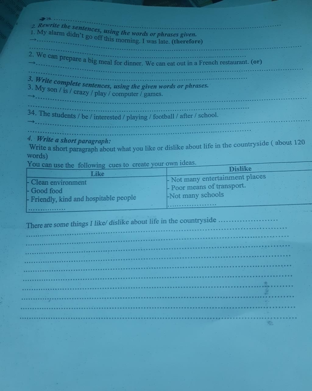 3. Write complete sentences, using the given words or phrases.