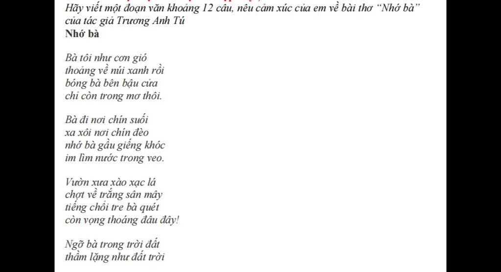 Hãy viết một đoạn văn khoảng 12 câu, nêu cảm xúc của em về bài thơ “Nhớ bà”
