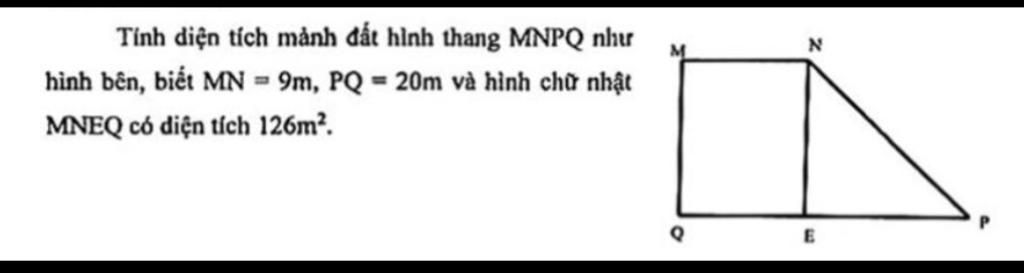 Diện tích mảnh đất hình thang `MNPQ` là: