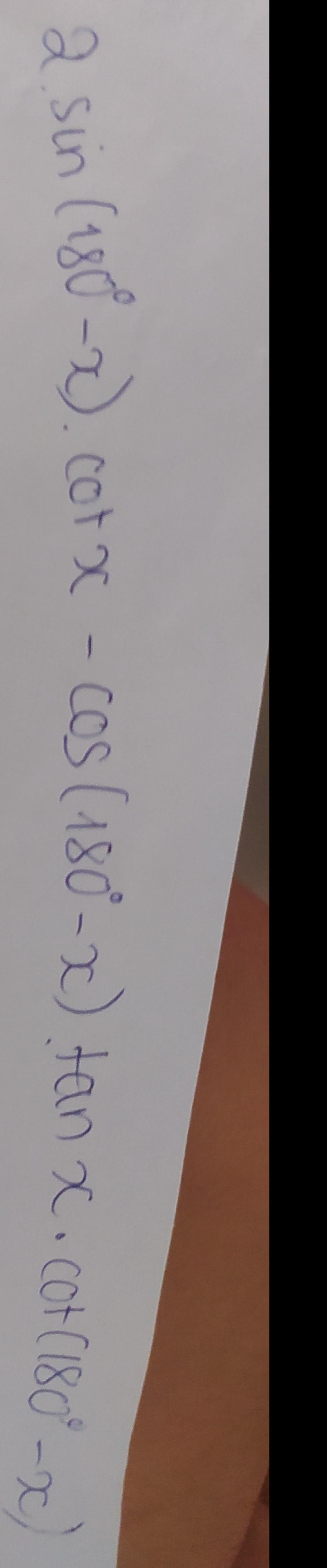 `2sin ( 180 - x ). cotx - cos ( 180 - x ) tanx. cot ( 180 - x )`