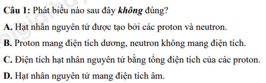+Proton mang điện tích dương và neutron không mang điện tích.