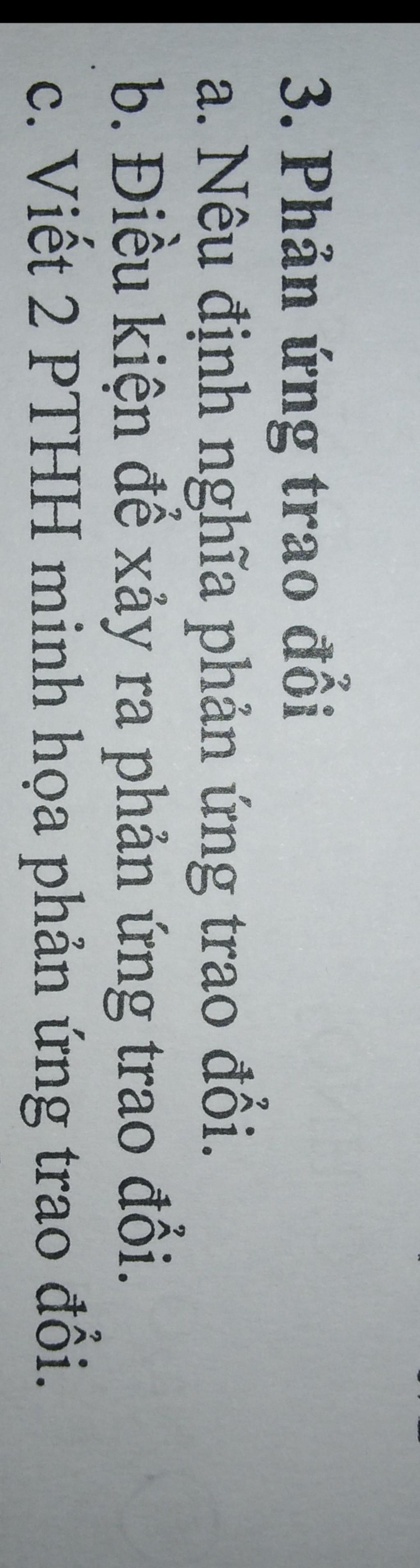 Giải thích các bước 1)Phản ứng trao đổi là một loại phản ứng hoá học, trong đó hai hợp chất tham gia trao đổi cho nhau thành phần cấu tạo của nó mà không làm thay đổi chỉ số oxi hóa. Từ sự trao đổi này, chúng hình thành nên những chất mới của phương trình phản ứng. 2) Điều kiện xảy ra phản ứng trao đổi: Phản ứng trao đổi trong dung dịch của các chất chỉ xảy ra nếu sản phẩm tạo thành có chất không tan hoặc chất khí. K2SO4 + NaOH: Phản ứng không xảy ra. Lưu ý: Phản ứng trung hòa cũng thuộc loại phản ứng trao đổi và luôn xảy ra. Mình chỉ làm được như thế thôi