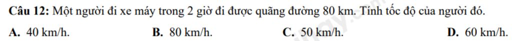 `v=s:t=80:2=40` km/h