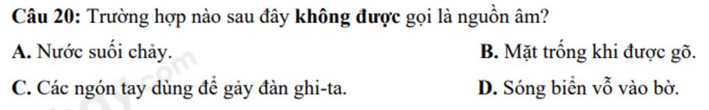 Câu 20: Trường hợp nào sau đây không được gọi là nguồn âm?