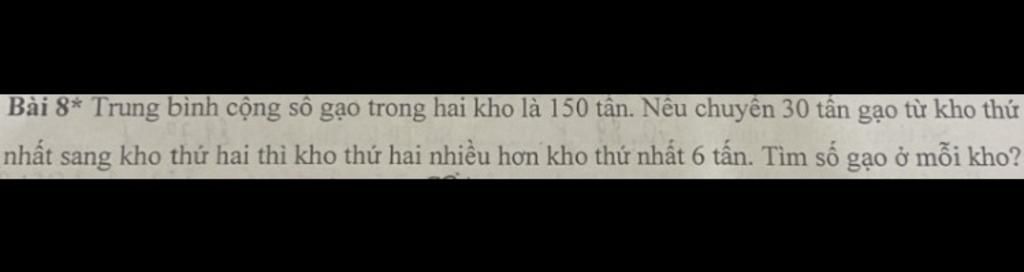 Đáp số : Kho thứ nhất : `162` tấn gạo