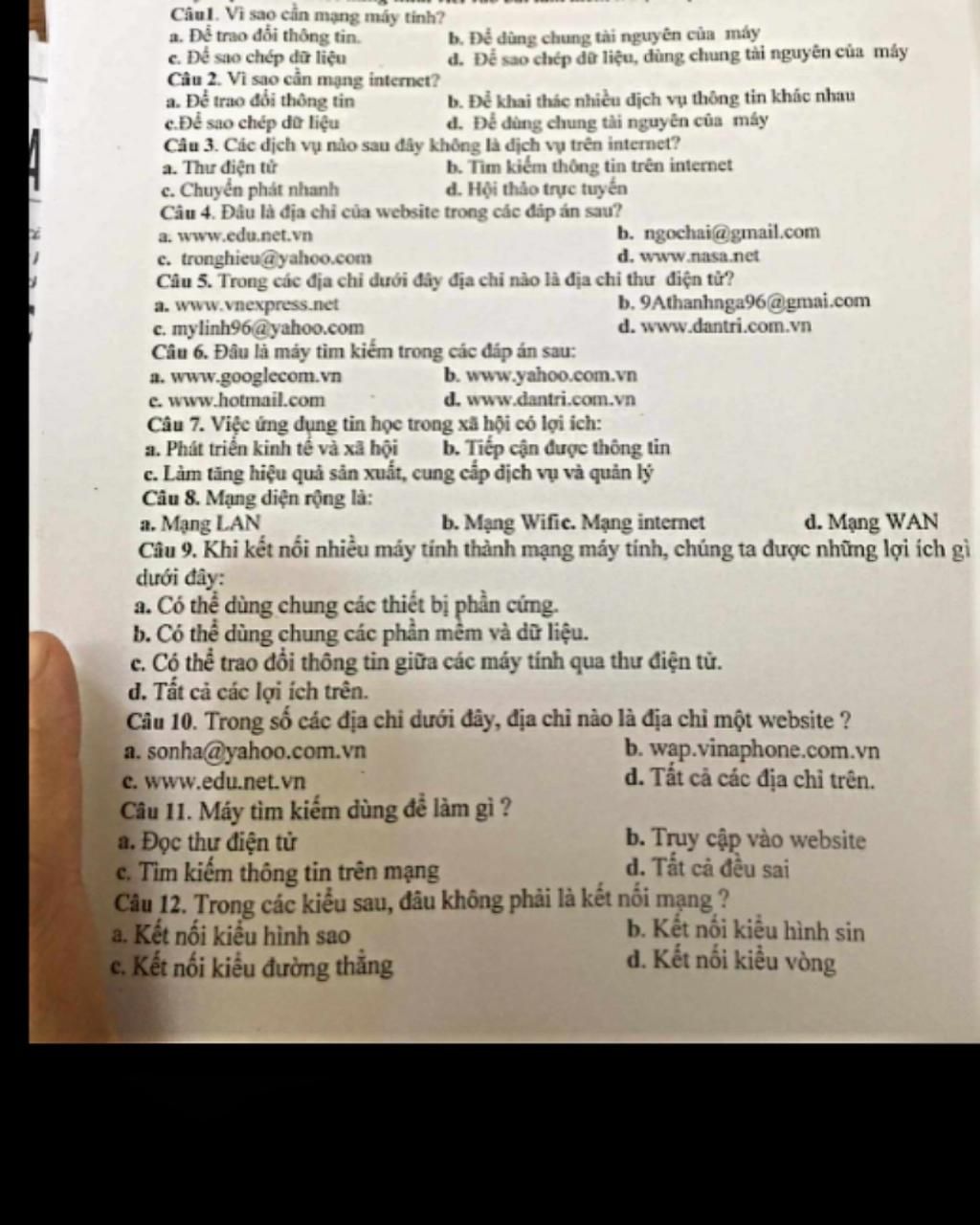 Câu 3. Các dịch vụ nào sau đây không là dịch vụ trên internet?