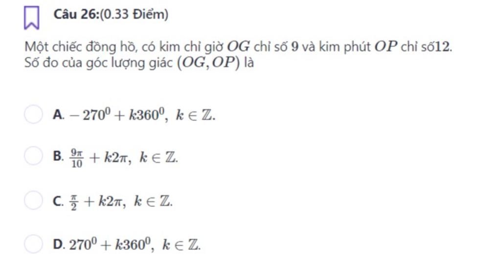 Một chiếc đồng hồ, có kim chỉ giờ OG chỉ số 9 và kim phút OP chỉ số12.