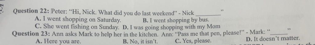`+` Ann "Làm ơn đưa cho tôi cây bút đó với! "