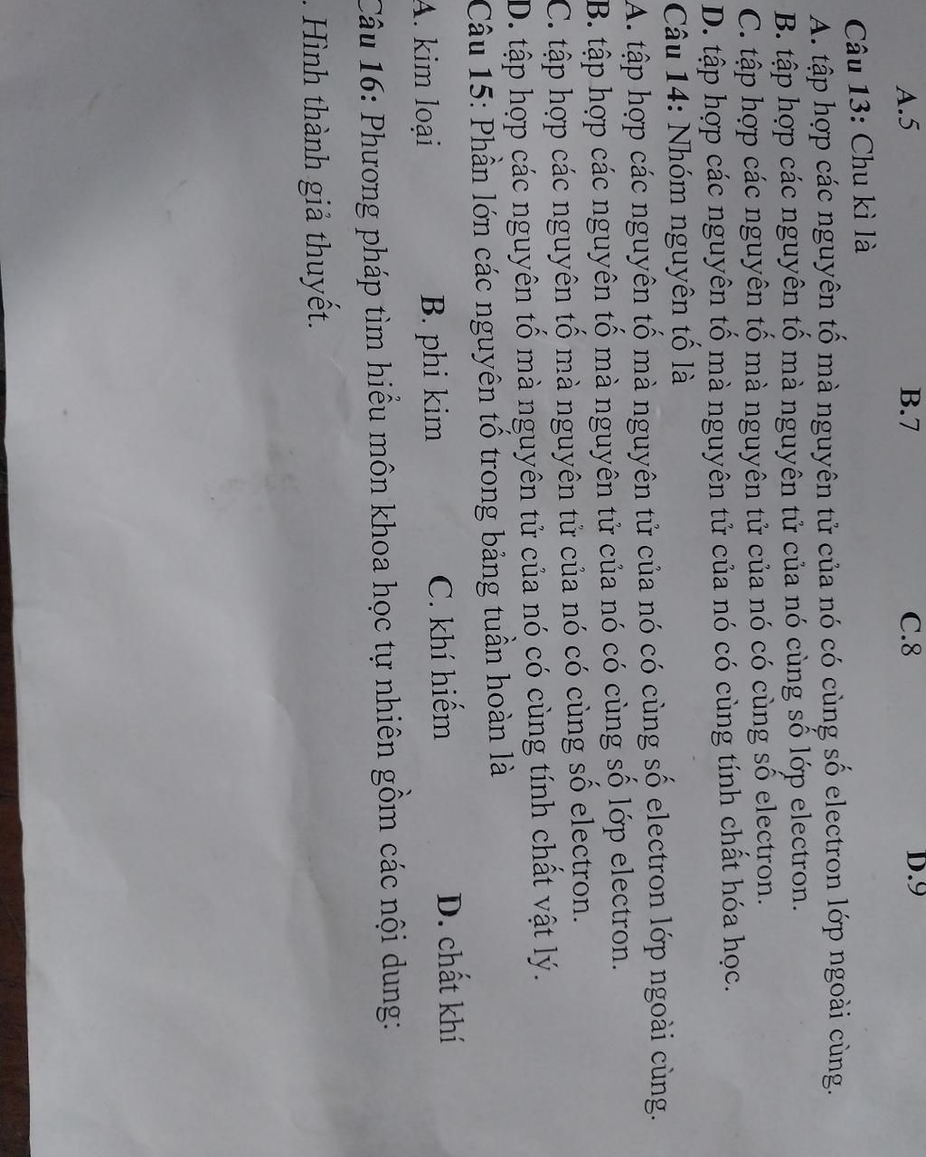 `->` Chu kì là tập hợp các nguyên tố mà nguyên tử của nó cùng số lớp electron.