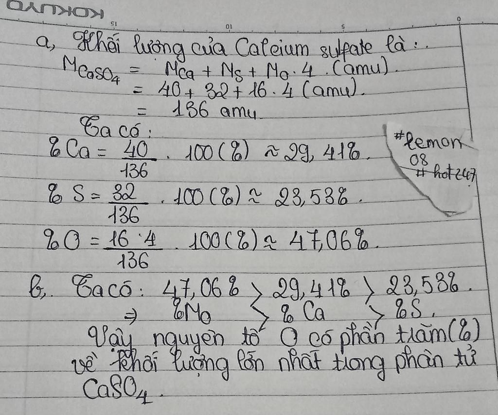 a)Khối lượng của nguyên tố Ca trong $xCaSO{4}$ là: