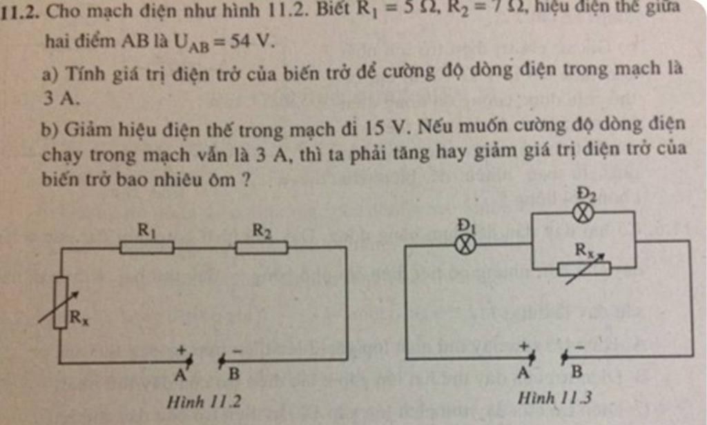b) Giảm hiệu điện thể trong mạch đi 15 V. Nếu muốn cường độ dòng điện