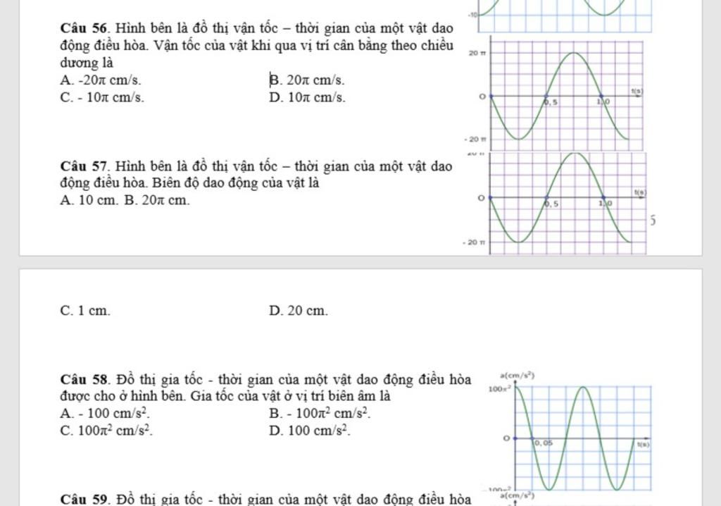 56.B Khi đi qua VTCB thì vận tốc có độ lớn cực đại mà theo chiều dương thì `20pi`