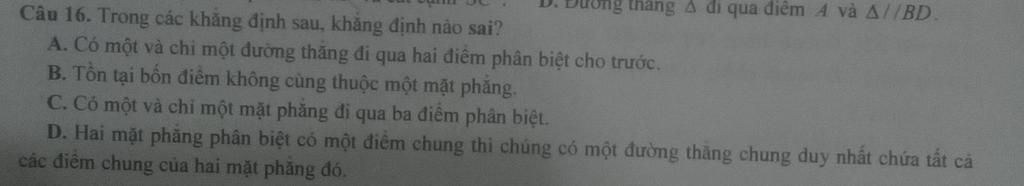 Câu 16. Trong các khăng định sau, khẳng định nào sai?
