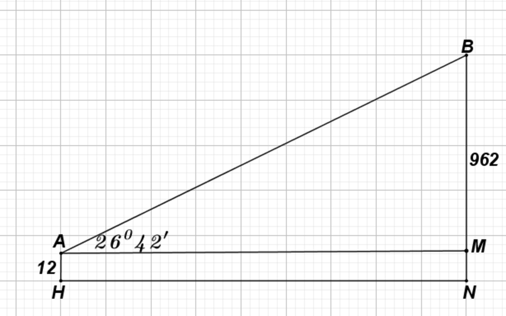 => AH = 12m; BN = 962m; góc BAM =26 42’.