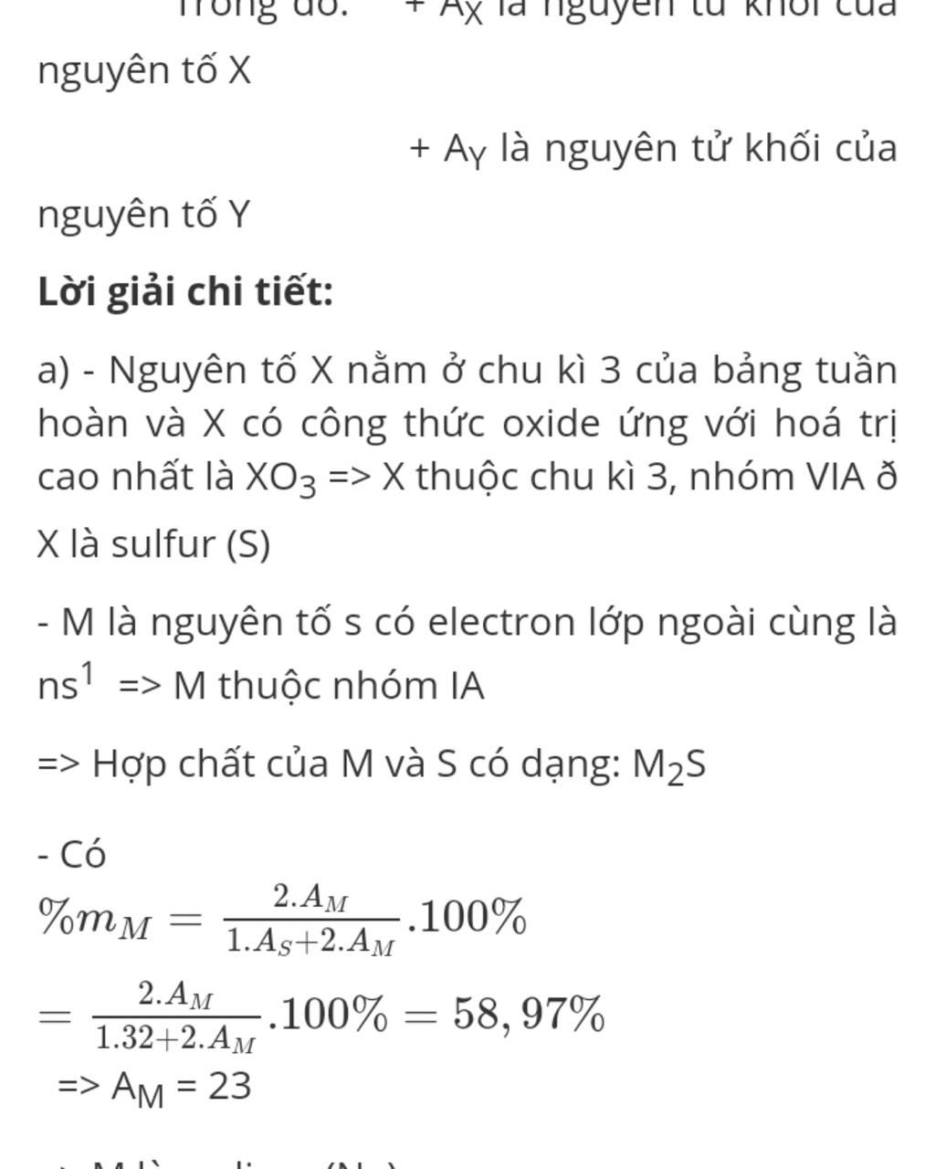 - M là nguyên tố s có electron lớp ngoài cùng là