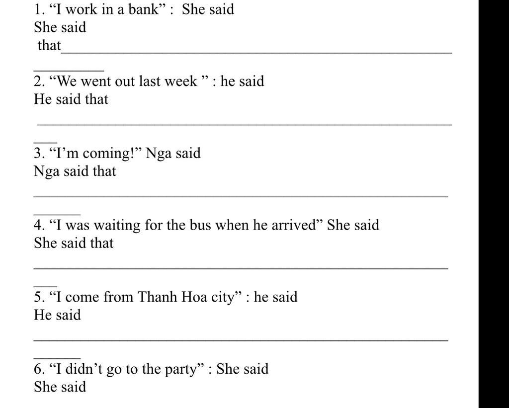 Câu gián tiếp dạng trần thuật: