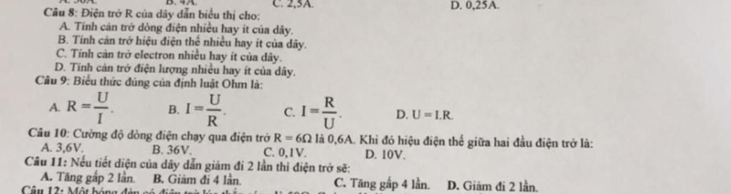 11A. `R=(pl)/S` nên khi giảm `S` đi `2` lần thì `R` tăng `2` lần.