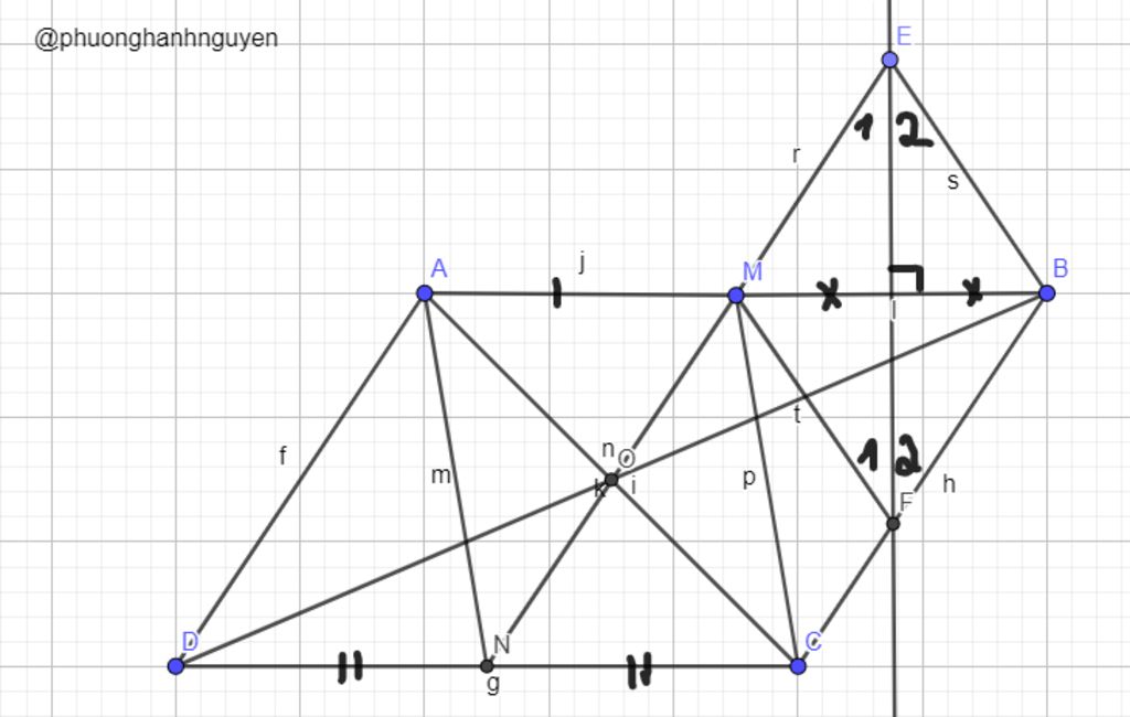 ⇒ Tứ giác $AMCN$ là hình bình hành ⇒ AC và MN cắt nhau tại trung điểm mỗi đường