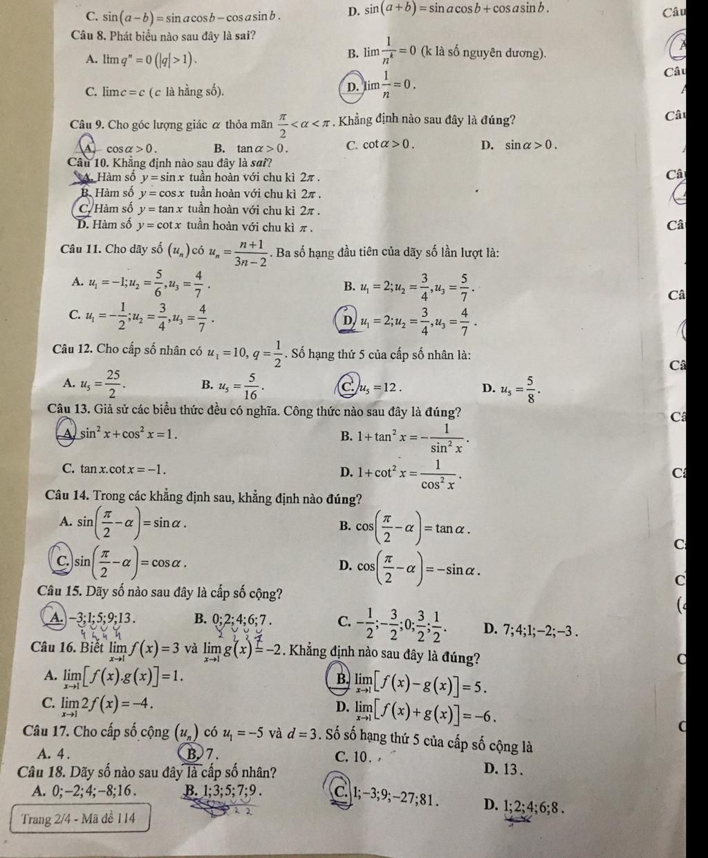 Câu 9. Cho góc lượng giác c thỏa mãn