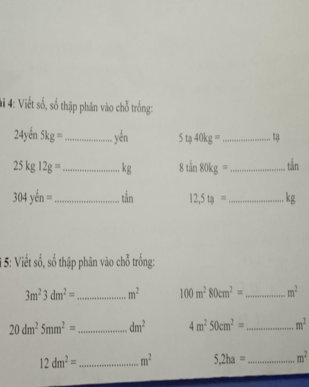 `5` tạ `40kg = 5 + 0,4 = 5,4` tạ