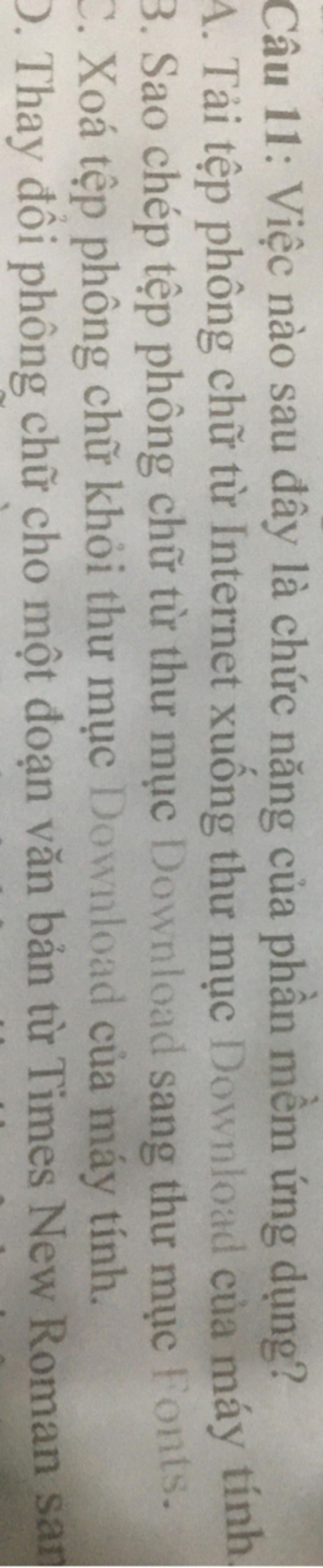 Câu 11: Việc nào sau đây là chức năng của phần mềm ứng dụng?