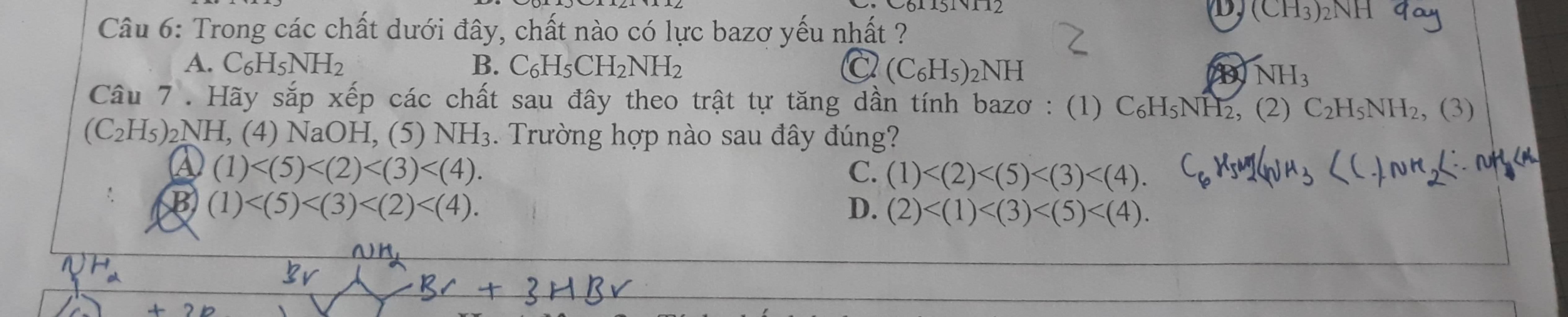 Vậy tính bazơ tăng dần: $(1)<(5)<(2)<(3)<(4)$