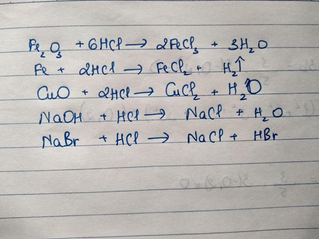 Fe2O3 + 6HCl -> 2FeCl3 + 3H2O