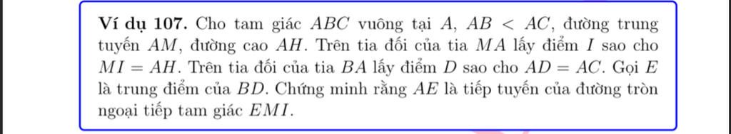 Ví dụ 107. Cho tam giác ABC vuông tại A, AB < AC, đường trung