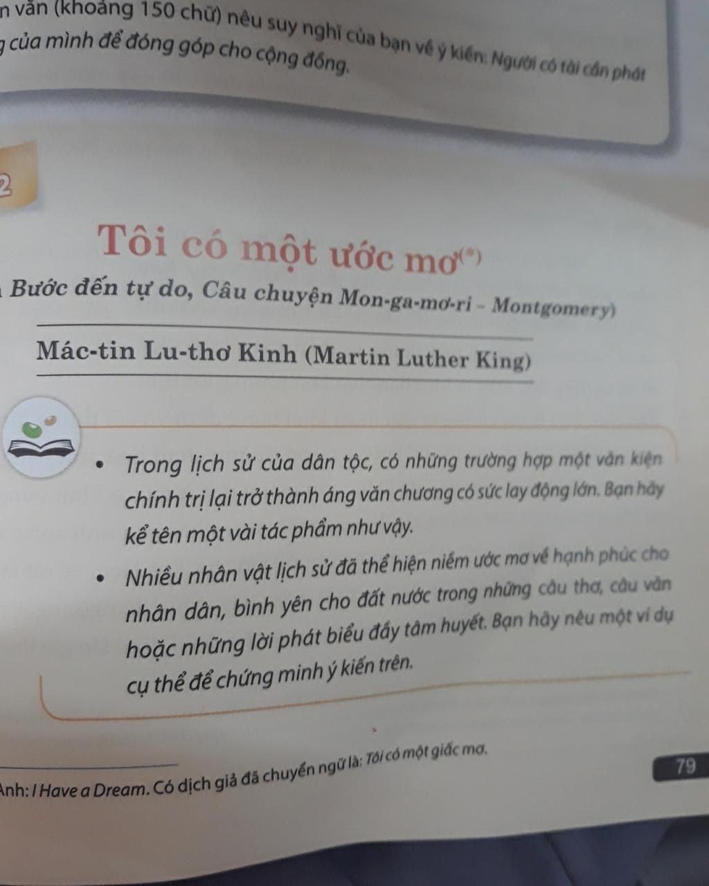 Lụân điểm 3 : (Ước mơ và niềm tin về sự tự do)của bài ''Tôi có 1 ước mơ'' do tác giả Mác-tin Lu-thơ Kinh.Phân tích cụ thể thành các đoạn văn ngắn