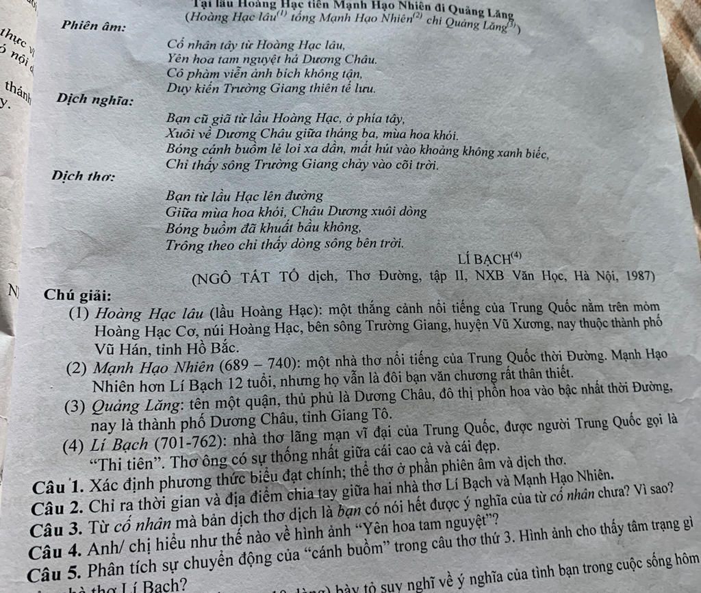 Cổ nhân tây từ Hoàng Hạc lâu,