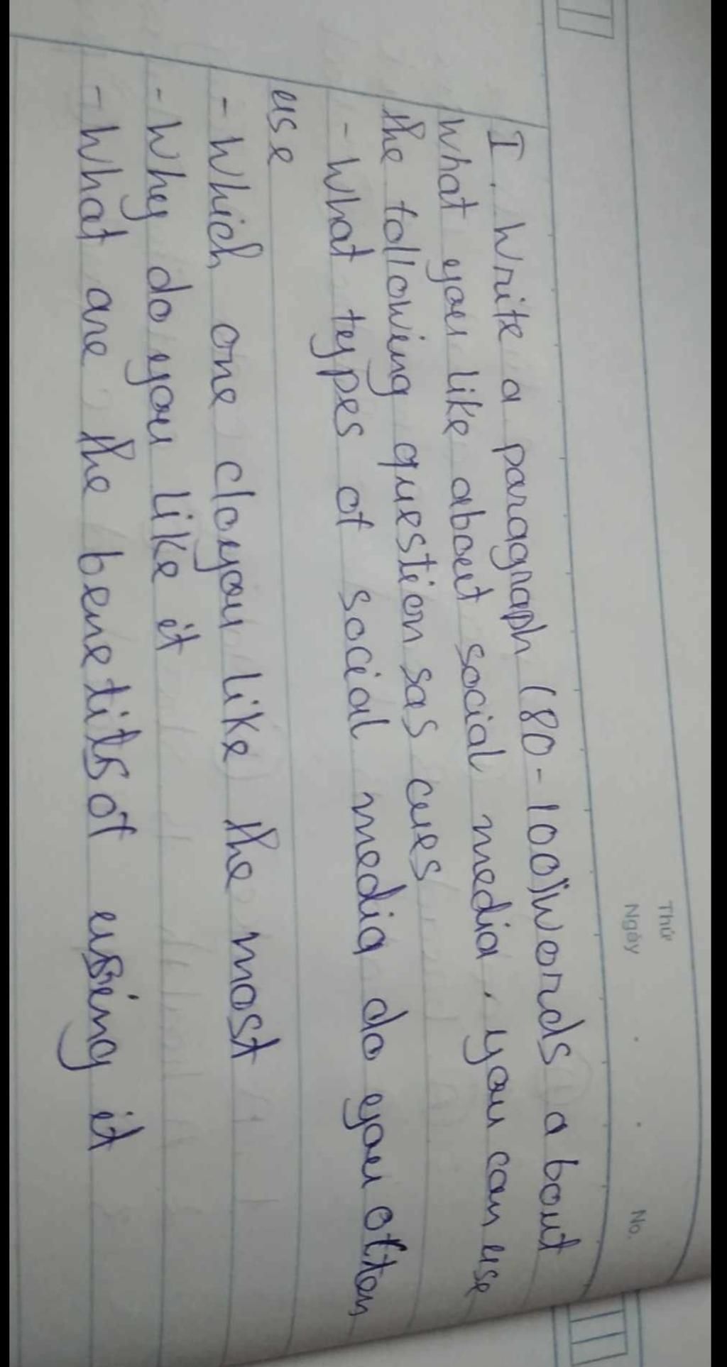 On my phone, there are a variety of social network application such as Tiktok, Youtube, instagram,... But I prefer using facebook best. First of all, I keen on using Facebook because my friend have an Facebook account for a long time, so I want to have an Facebook account too. Moreover, Facebook have a plenty of group fit with me. I really ejoy that and it make me reduse stress. In addition to that, Facebook can give me more friend or I can share a lot of story on some group on a forum I have ever join for a long time ago.Finally, Facebook is a very very big forum in the word, so I will be anybody friend if they need because I think someone need to share thier family or something like that but they can find anyone. I love Facebook so much!!!!