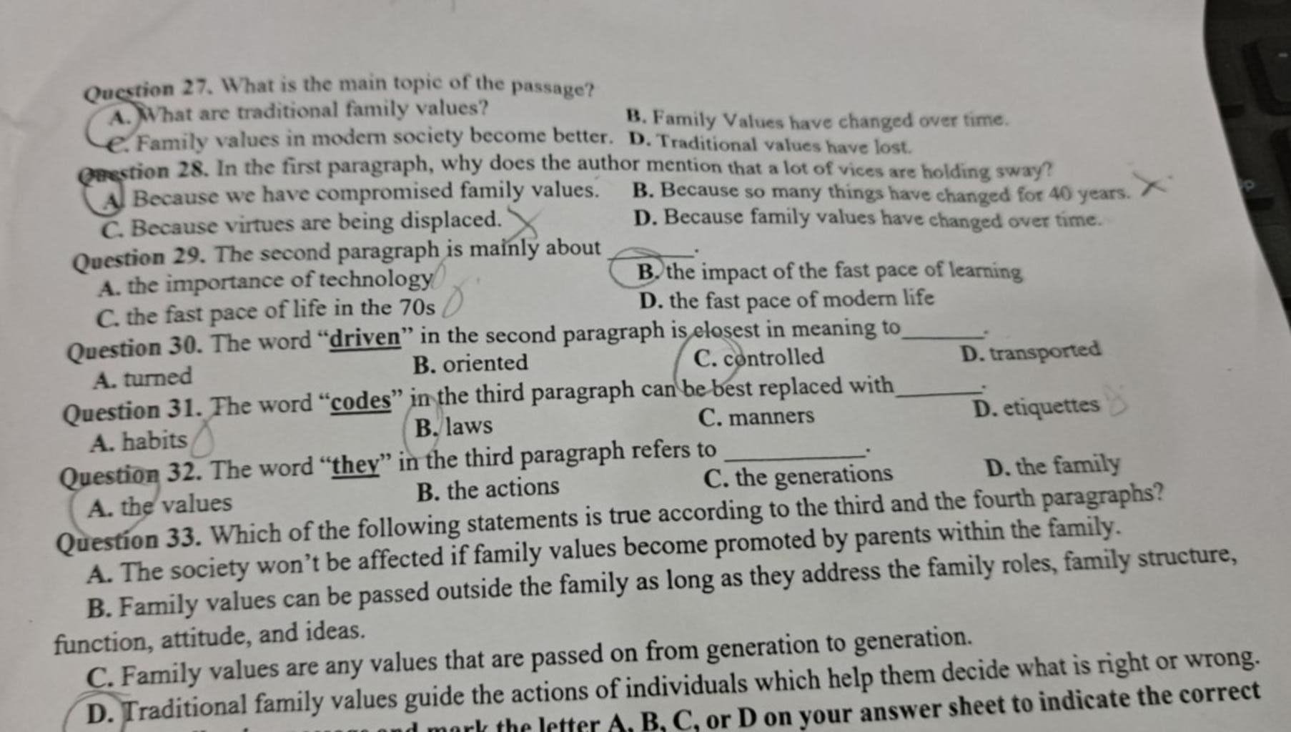- Dẫn chứng: The fast pace of learning has kept parents lagging in getting a hold of their kid's moral values and helping them understand what family values used to be.